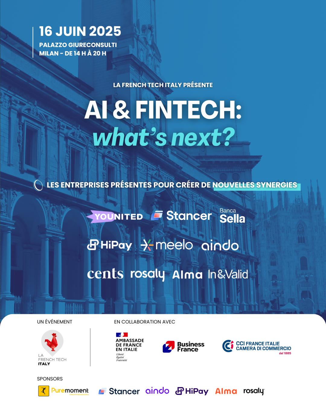 La French Tech Italy, Business France, l’Ambassade de France et la Chambre de Commerce France-Italie ont le plaisir de vous inviter à « AI & Fintech : What’s Next? », un événement exclusif dédié aux nouvelles frontières de l’Intelligence Artificielle dans le secteur de la Fintech.