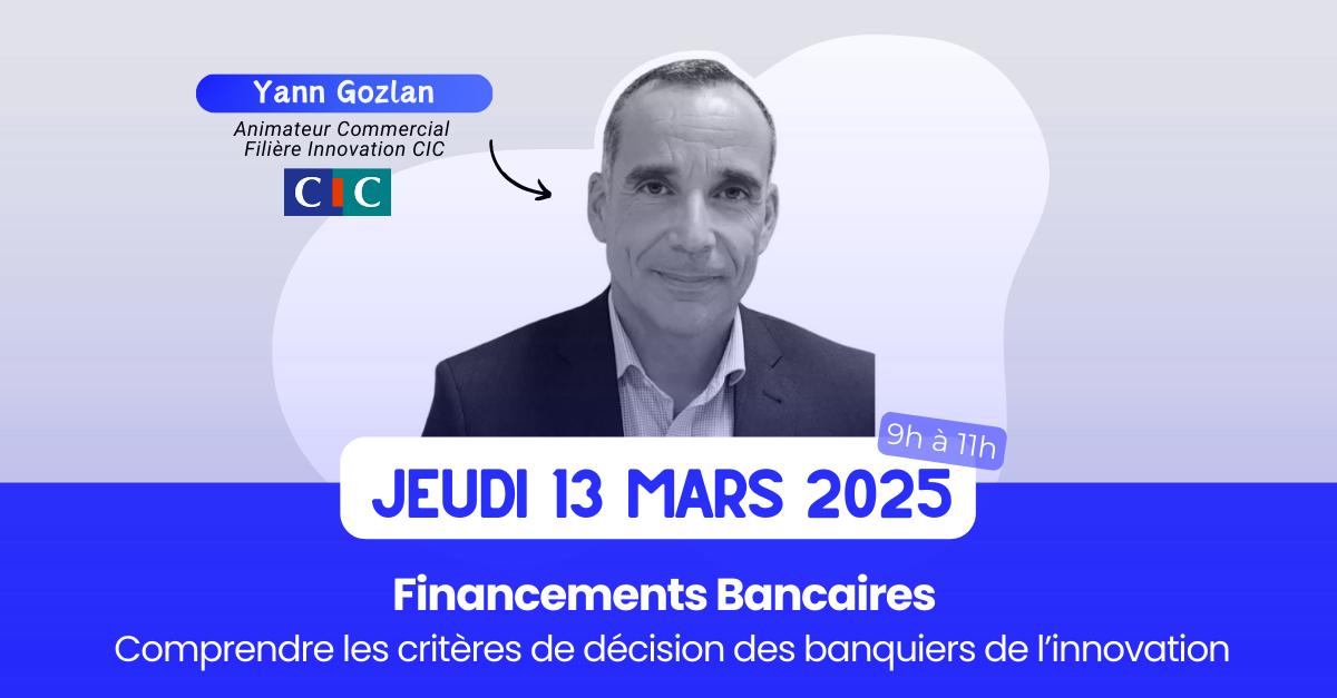 Cet événement est fait pour vous ! Découvrez les clés de lecture des banquiers de l’innovation, leurs critères de décision, et les différentes options de financement et d’accompagnement bancaire disponibles !