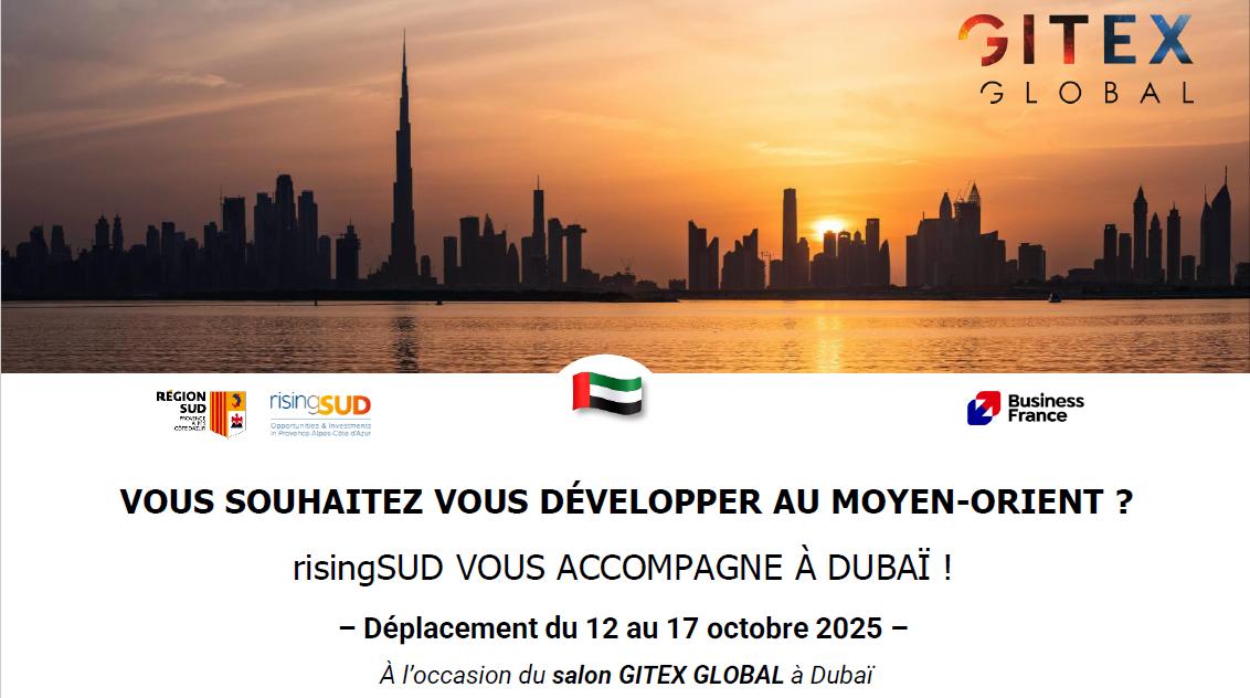 risingSUD et la Région Sud, en partenariat avec Business France, organisent une Learning expedition du 12 au 17 octobre 2025, à Dubaï à l’occasion du GITEX GLOBAL