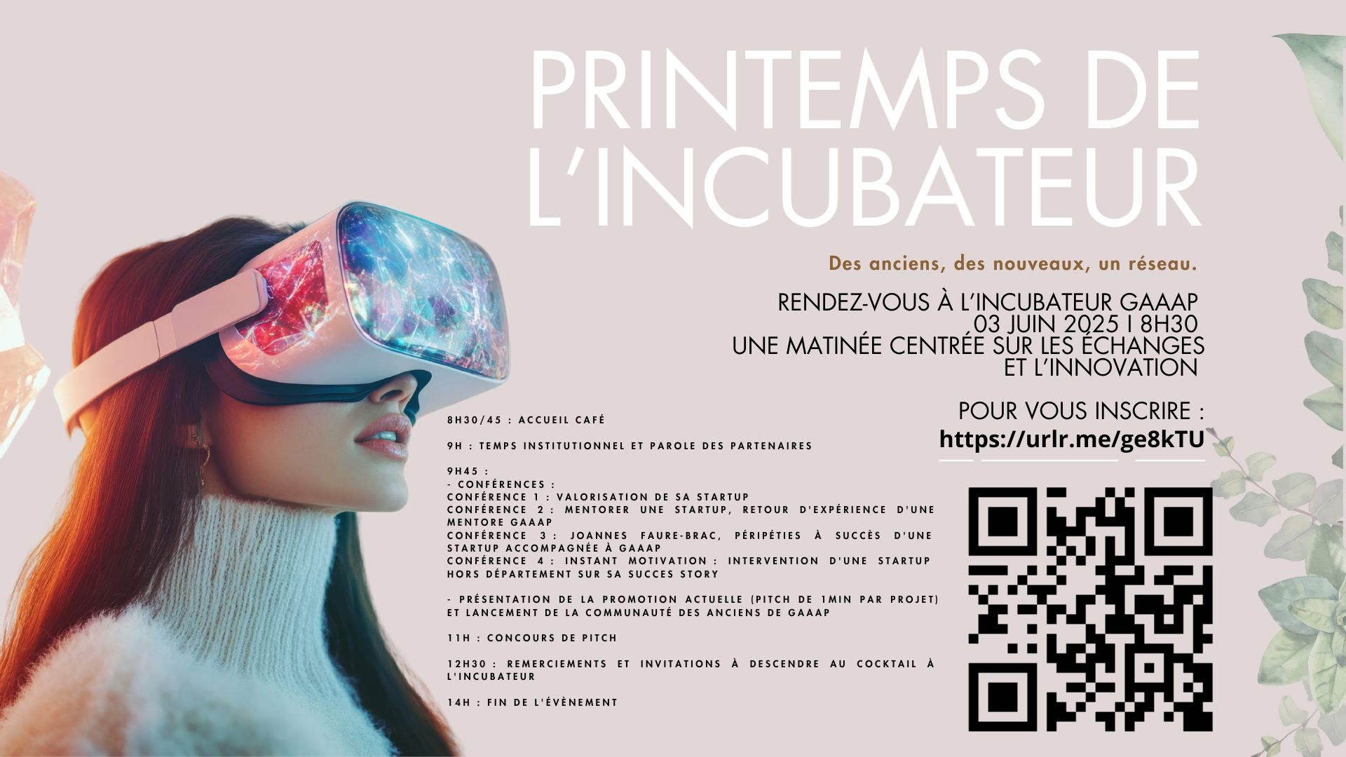 - Email : contact@gaaap.fr (objet : « Printemps de l’incubateur »)