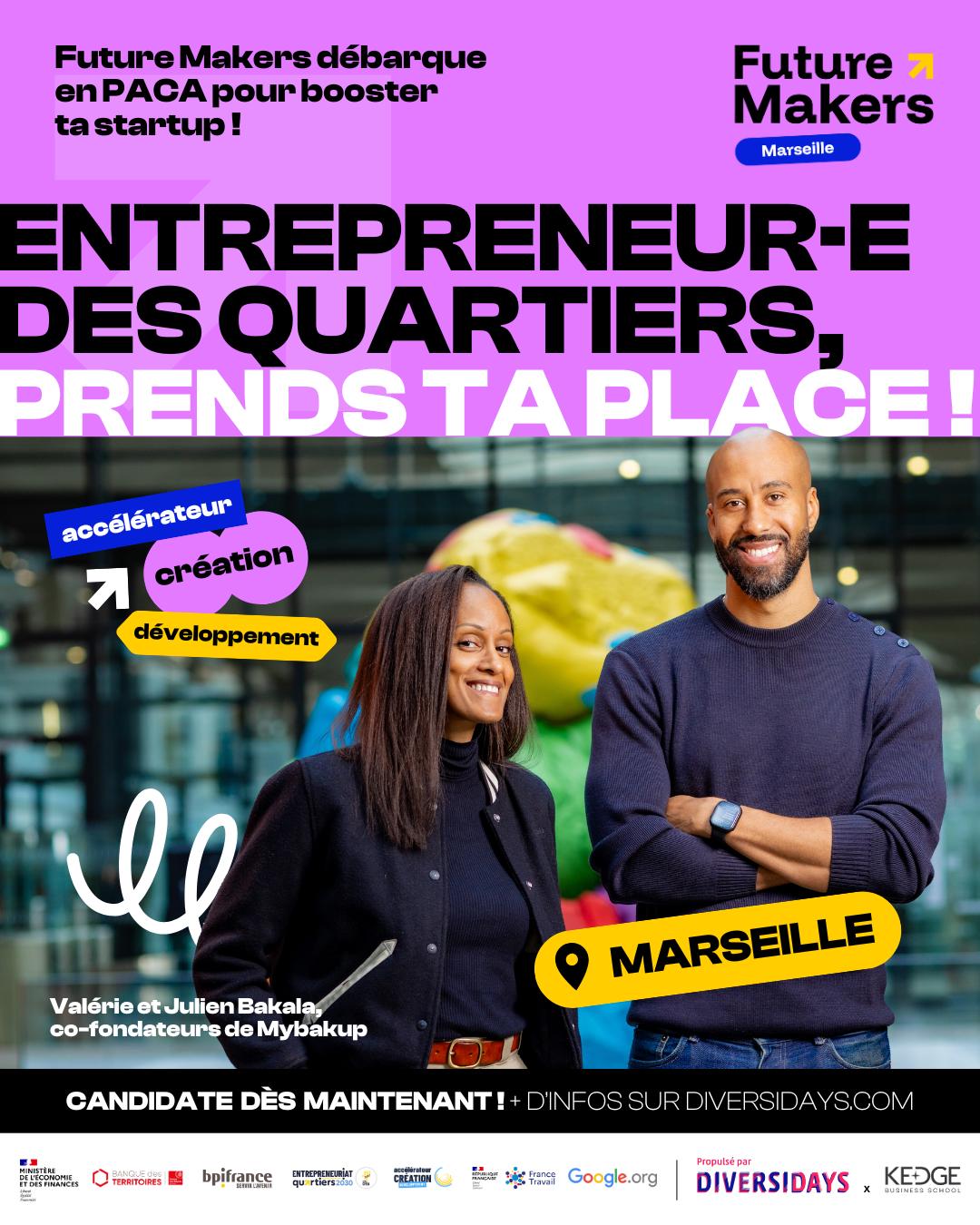 🚀 Rejoins Future Makers, là où ton ambition rencontre deux réseaux d’élite ! À Marseille, Diversidays et KEDGE Business School unissent leurs forces pour te propulser. D’un côté, Diversidays, acteur national engagé pour l’inclusion et la réussite entrepreneuriale dans les quartiers. De l’autre, KEDGE, école de commerce d’excellence, au cœur de l’écosystème French Tech Aix-Marseille. 👉 Ensemble, ils t’ouvrent les portes d’un réseau unique d’expert·es, de mentors, d’investisseur·es et d’entrepreneur·es à impact, pour faire décoller ta startup. 💥 Tu viens d’un QPV et tu as déjà du chiffre ou une forte traction ? Ce programme est ton raccourci vers le changement d’échelle. 12 mois d’accélération. Un tremplin. Un réseau. Un avenir. #FutureMakers #EntrepreneuriatQuartiers2030