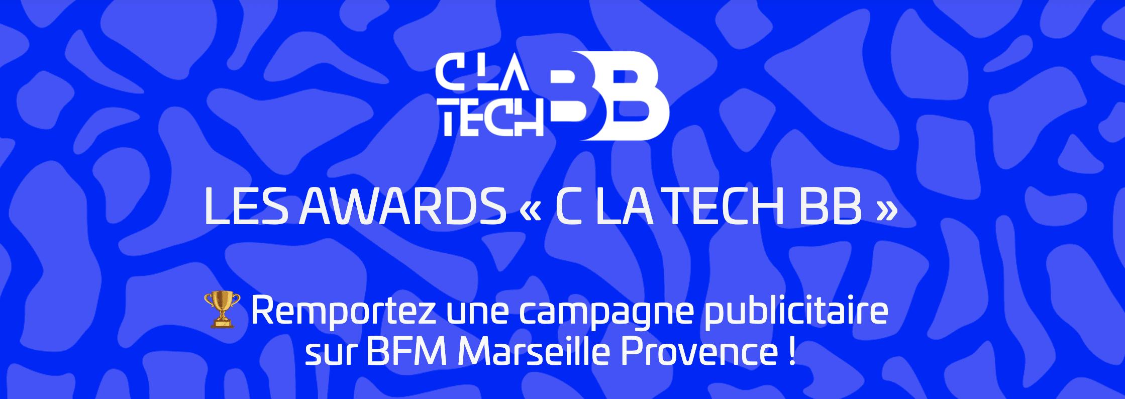 Dotations pour les lauréats : Un passage sur scène, le soir de la cérémonie, pour récupérer votre award C La Tech BB - Une campagne media offerte sur BFM Marseille Provence - Une invitation en plateau dans l'émission C'est La Tech BB ! sur BFM Marseille Provence - Des citations sur les réseaux sociaux BFM Business et BFM Marseille Provence - Une présentation en tant que lauréat sur le site internet C La Tech BB - Une annonce presse via notre communiqué de presse.