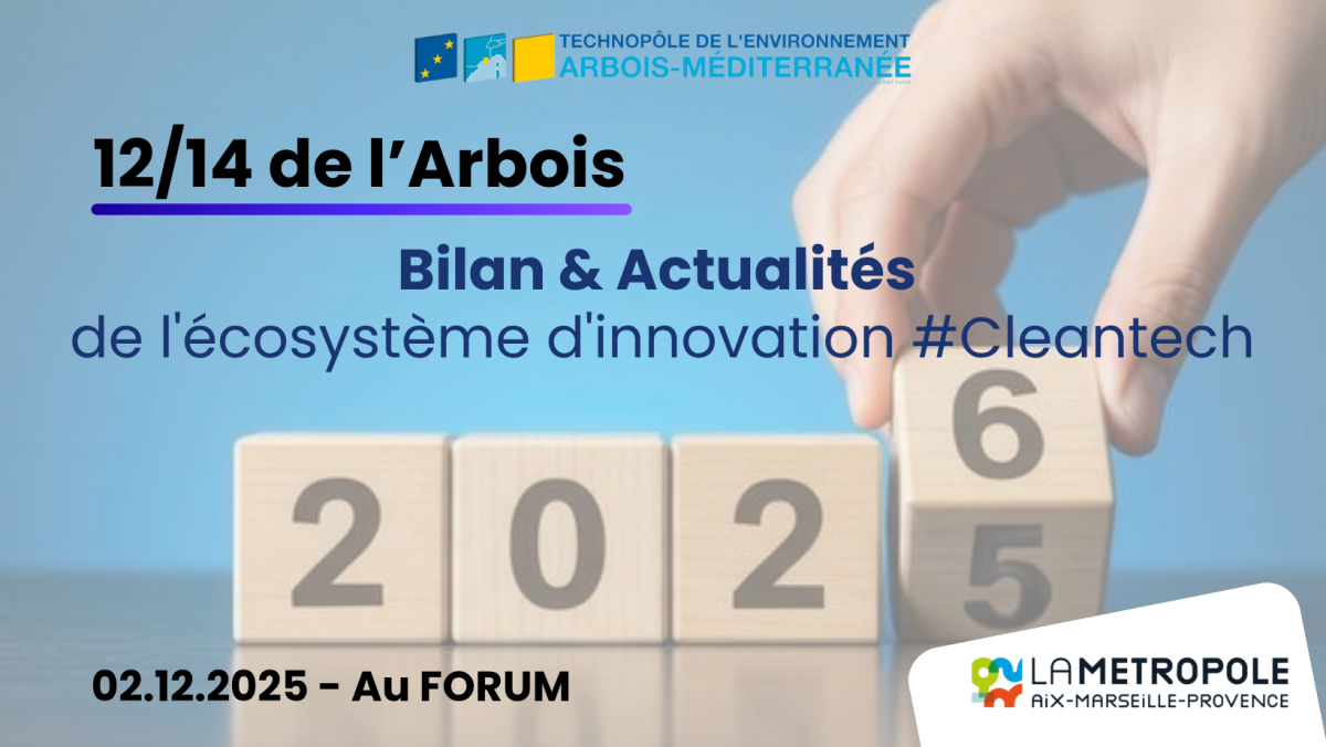 [12/14 de l’Arbois] Bilan et Actualités de l’écosystème d’innovation #Cleantech Mardi 02 décembre 2025 Salle de Conférence du Forum Technopôle métropolitain de l’Arbois Pour ce dernier [12/14 de l’Arbois] de l’année, le Technopôle métropolitain de l’Arbois vous invite à un évènement clé… Read More
